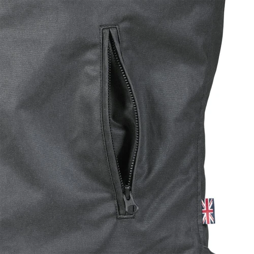 Triumph Braddan Wax motorsykkeljakke i svart har også to håndglidelåslommer, som gir rikelig med oppbevaring av det du trenger. De vatterte panelene på overarmen og skulderen gir en ekstra stil til denne allerede imponerende jakken. Enten du kjører på den åpne veien eller bare cruiser rundt i byen, har Triumph Braddan Wax motorsykkeljakke i svart dekket deg.